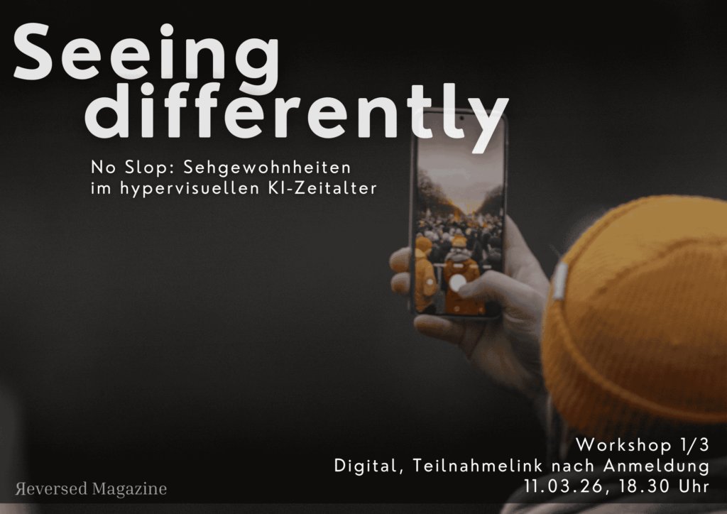 Anders sehen – seeing differently: Wir sind unter anderem mit Reversed gestartet, weil wir zeigen wollten: Über eine konstruktive und professionelle Bildsprache kann der redaktionelle Betrieb viel mehr erreichen als über reinen Text. Bilder transportieren Realitäten, Emotionen, eine ergänzende Seite zum Wort. Jetzt ist 2026: AI Slop dominiert mehr und mehr die Social-Media-Plattformen. Horror-Nachrichten – insbesondere aus den USA – fluten unsere Feeds. Und wir als Medienschaffende, Fotograf:innen und zivilgesellschaftlich Aktive mitten drin. Was können Bilder – unsere Fotos, unsere langen Reportagen, unsere Artikel – in dieser Gemengelage eigentlich noch erreichen? Diese Frage stellen wir uns schon länger.
