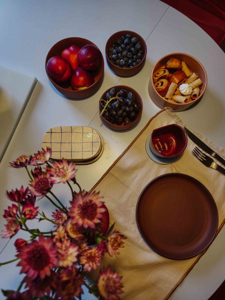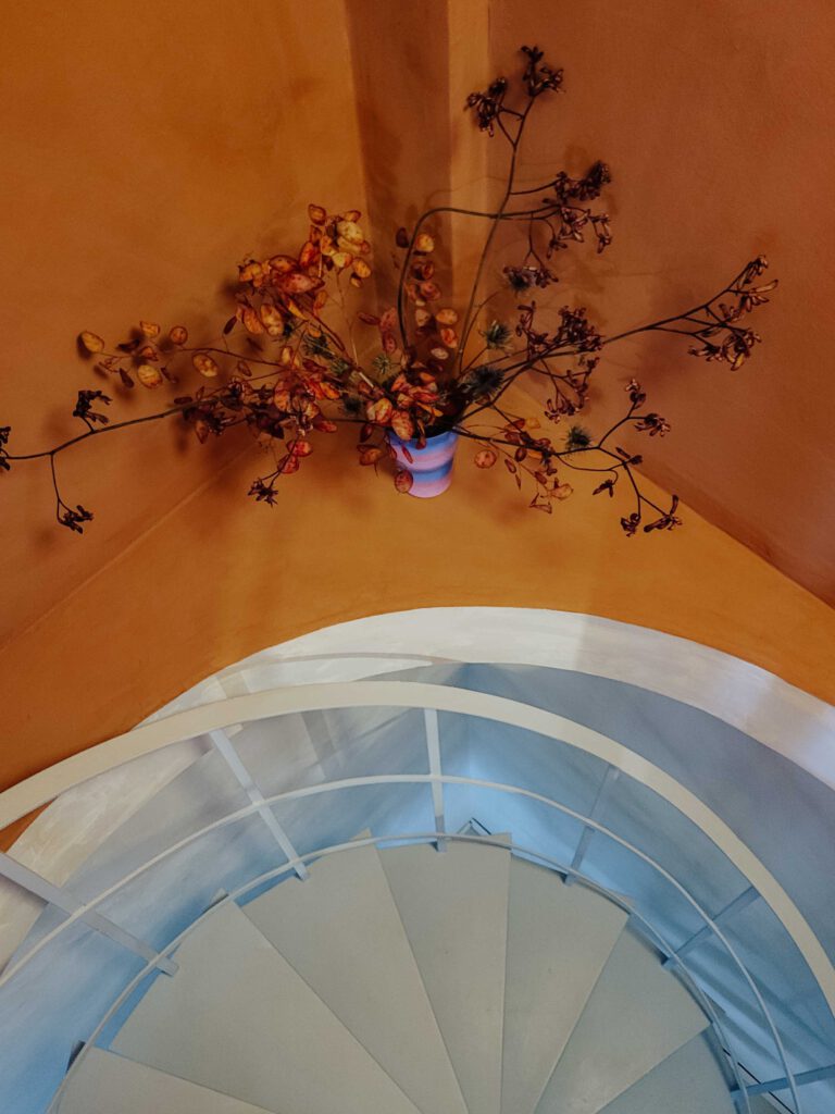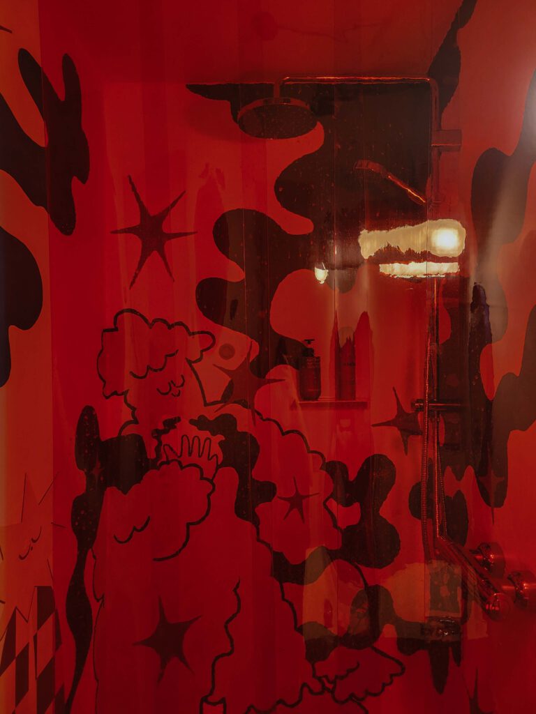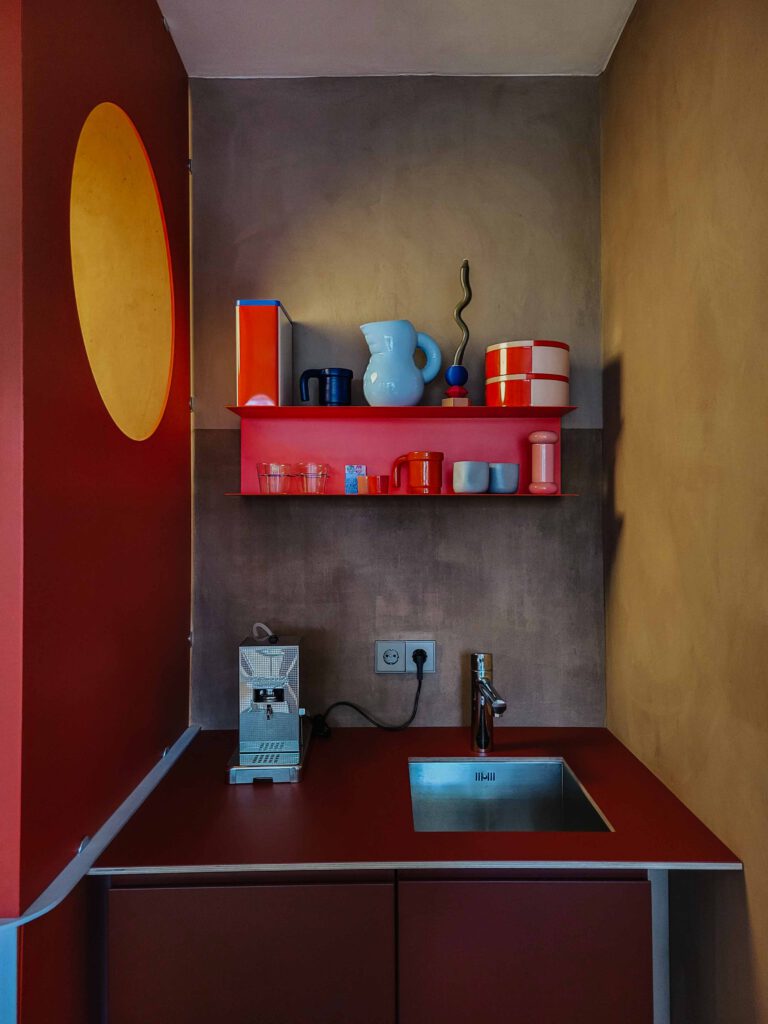 Rot, hellblau und viel mehr: Überall sind Farben. Saskia Behrens versteht es, sie zu nutzen und sie miteinander zu kombinieren, ohne dass es irgendwie überwältigend wirkt. Im Gegenteil: stimmiger könnte es kaum sein – bis ins letzte Detail. Rohre, Türgriffe und sogar die Toilettenpapierhalterrolle sind farblich aufeinander abgestimmt. Saskia sagt von sich selbst, sie würde sich am ehesten als Placemakerin bezeichnen und als wir konkret fragen, was sie damit meint, erklärt sie, dass sie sich an der Schnittstelle zwischen Design und Sozialem verortet. Getreu dem Motto: Jeder Mensch sollte Schönes haben dürfen, arbeitet sie ohne nennenswertes Budget unter anderem daran, die typischerweise eher zweckmäßig eingerichteten SOS Kinderdörfer-Räume vom SOS Kinderdorf Worpswede bei Bremen mit Farbe zu füllen. Aber nicht nur das: mit gefühlt unendlicher Kreativität und Fürsorge möchte Saskia gleich das ganze Konzept Raum im kapitalistischen Status Quo neu denken. So bietet sie Künstler:innen an, in ihrer Wendolin Residency für umsonst zu übernachten – und arbeitet an Waldolin. Das Konzept: Ein barrierearmes gepachtetes Haus im Grünen für Eltern oder Menschen, denen Zeit im Grünen guttun könnte. Ganz ohne Gewinnabsicht. Um zu zeigen, dass es geht, Raum anders zu denken. Wir waren zu Gast bei Wendolin* und haben mit Saskia gesprochen – über Design, das Neudenken von Räumen und wie wir Gemeinschaft leben können.